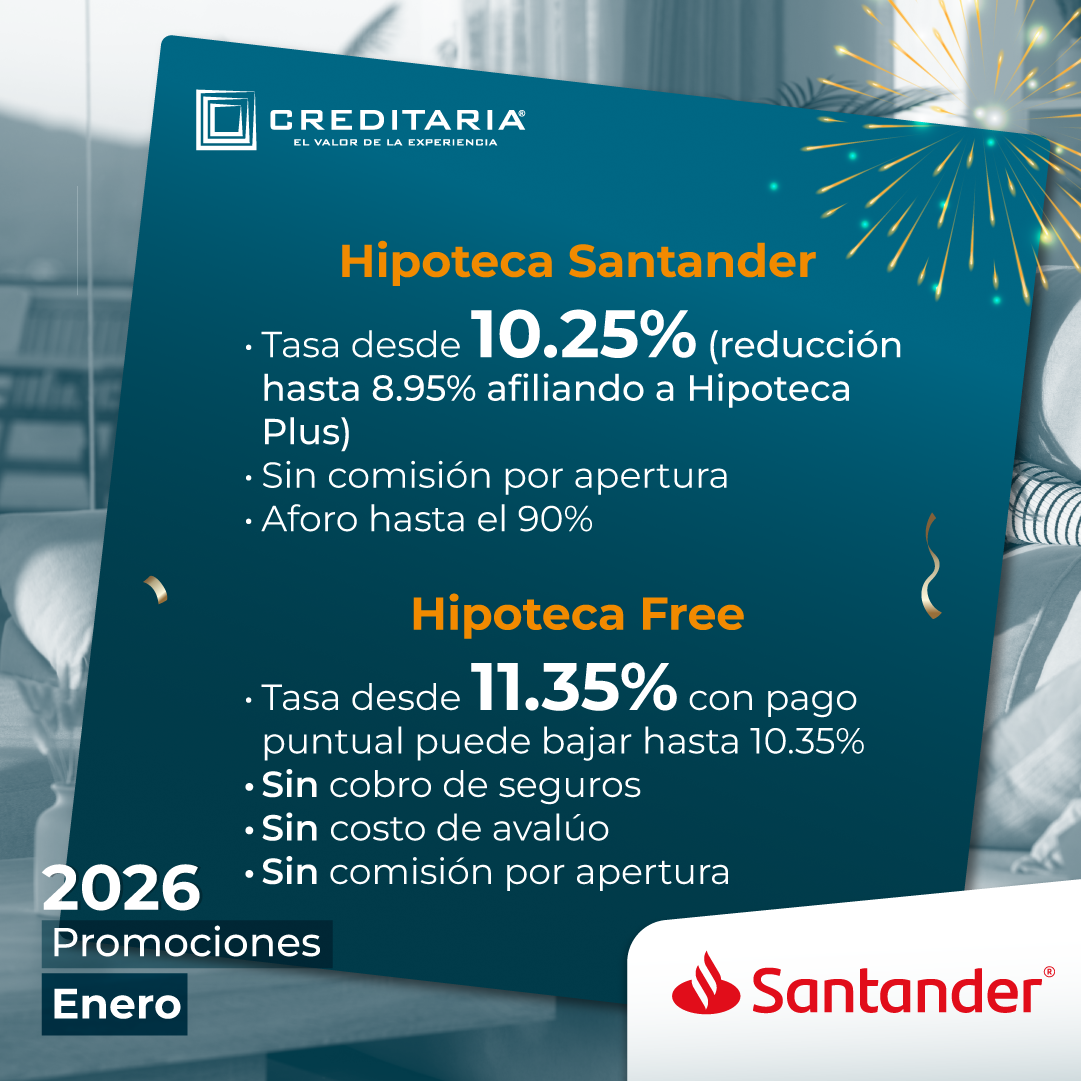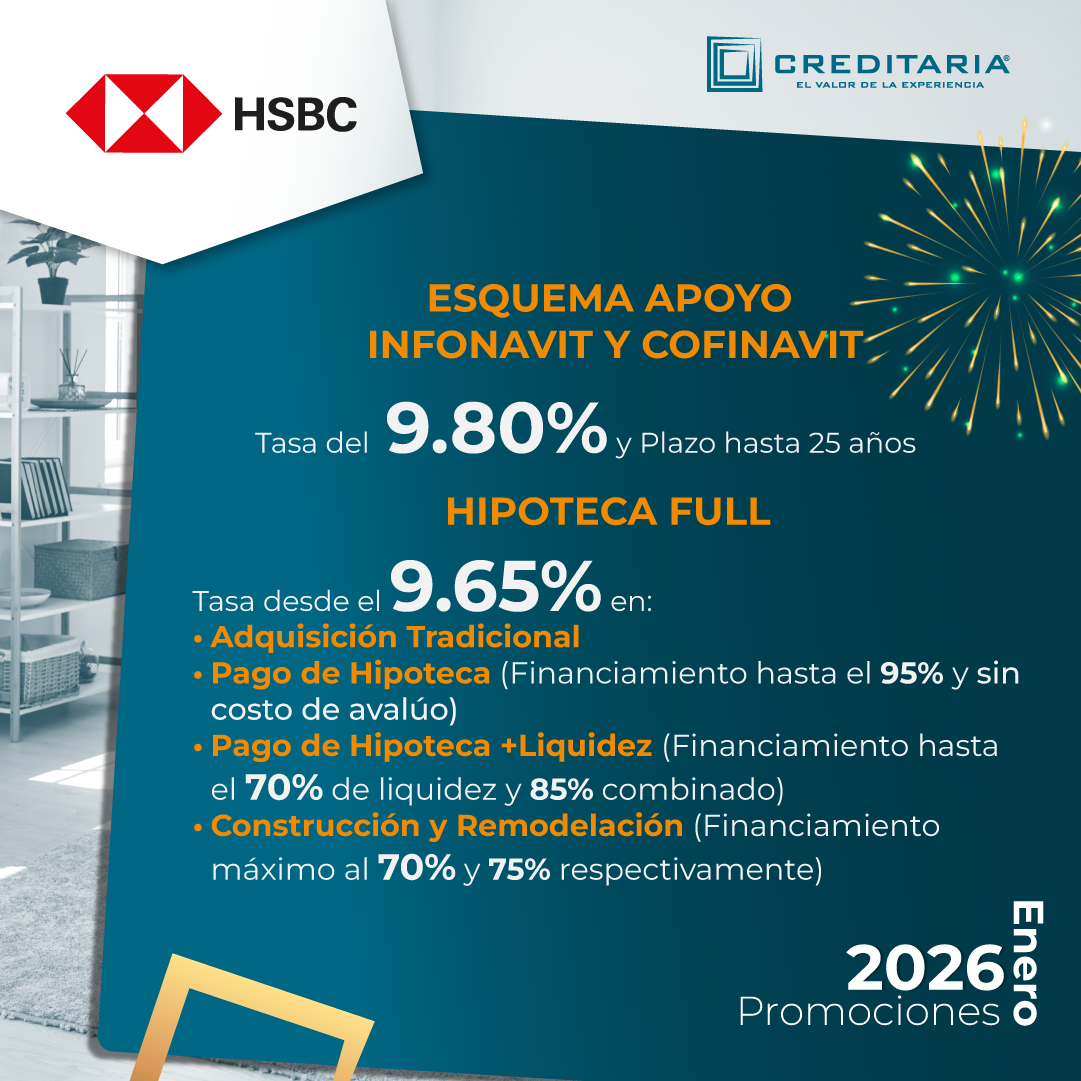 1. Crédito Hipotecario para adquisición, construcción, remodelación, liquidez hipotecaria y sustitución de hipteca, con Bancos y Financieras que pueden llevar COFINAVIT o Apoyo Infonavit.